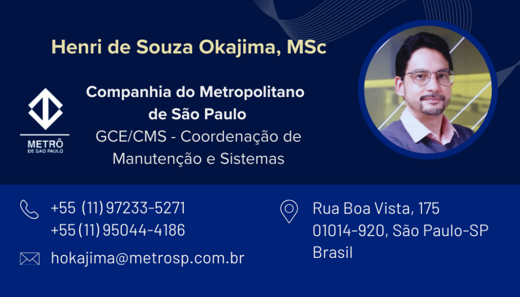 Engenheiro. MSc. em Engenharia Elétrica, Processamento Digital de Sinais. Especialização em Telecomunicações. Foi Assessor Técnico na Gerência de Engenharia de Custos do Metrô de São Paulo. Atualmente está como Coordenador de Custos de Manutenção e Sistemas do Metrô de São Paulo.